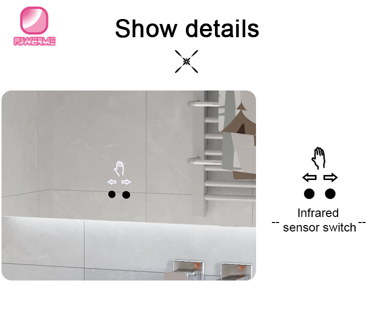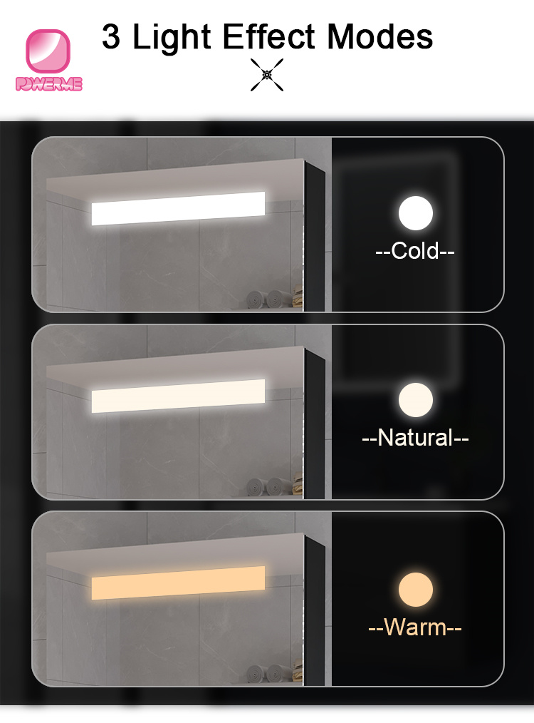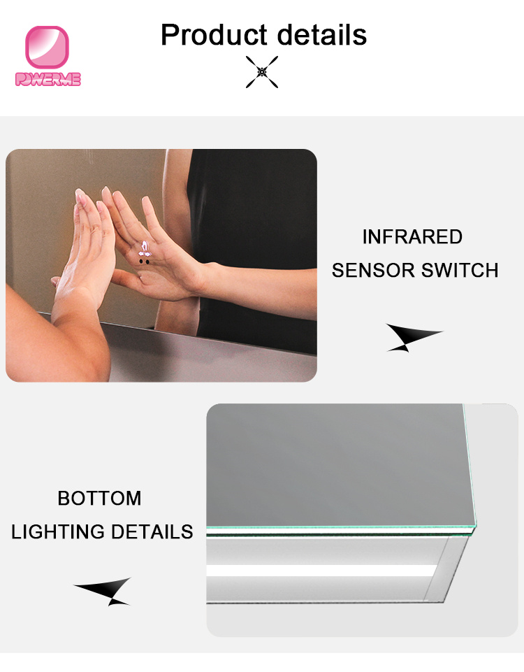 You Location:Home ? Products ? LED Mirrored Cabinet ? PC-A501 LED Bathroom Medicine cabinet with inductive switch control