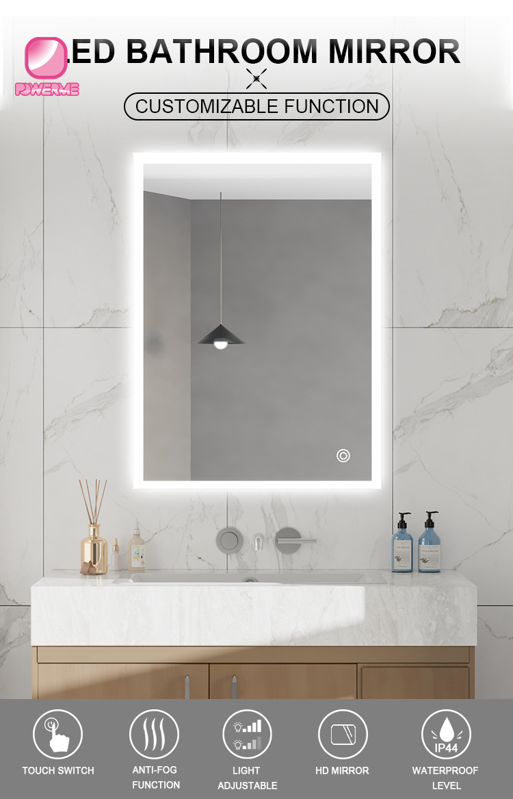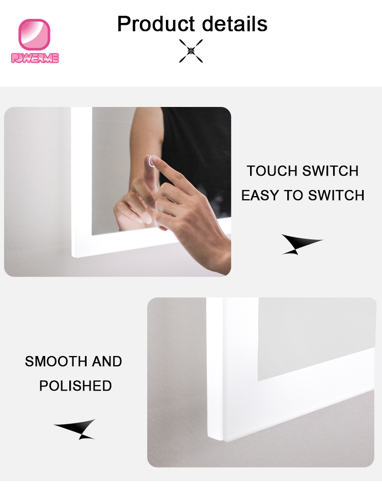 You Location:Home ? Products ? Smart Bathroom mirror ? PM-A200 LED Lighted Bathroom Vanity Mirror Wall Mounted