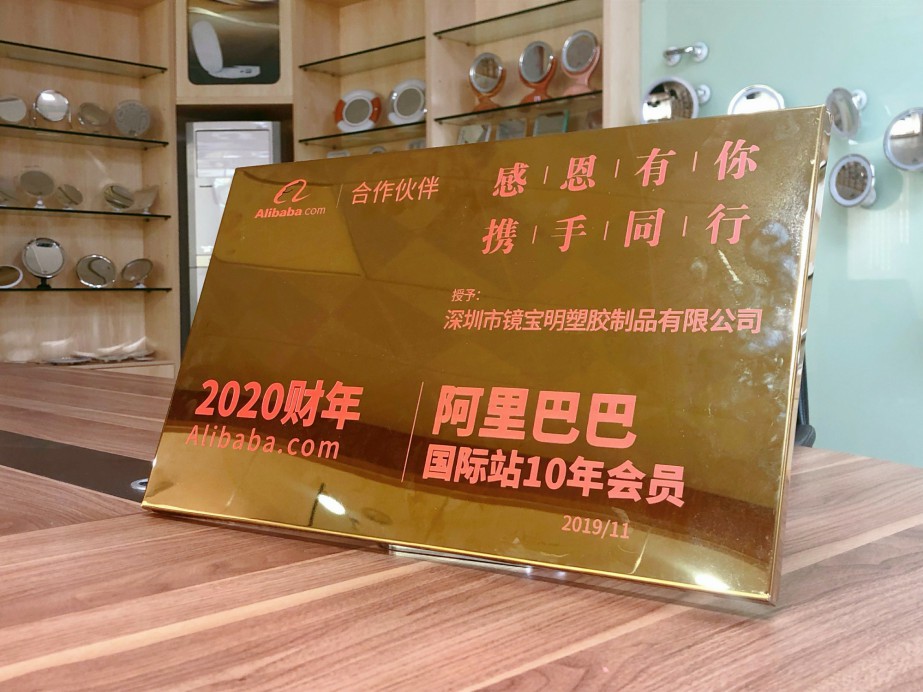 2019年12月10日,鏡寶明與阿里巴巴國際站合作10周年,阿里給予我司頒發金色證書,國際站一直為我司線上重點合作伙伴之一,感恩有你,攜手同行。