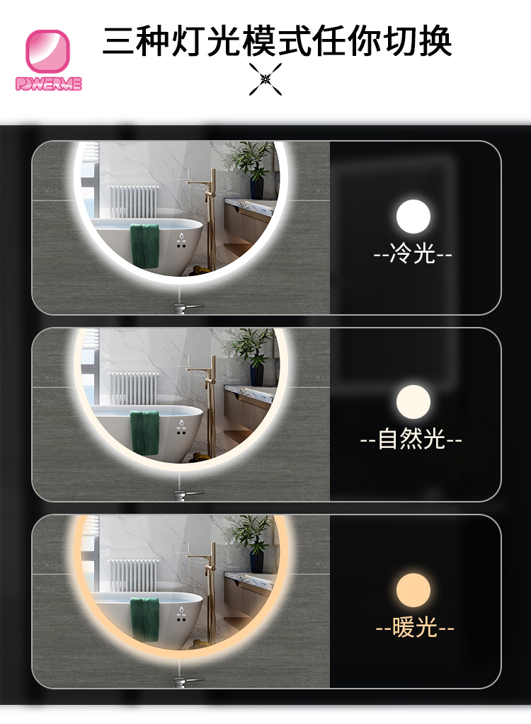 PM-A300 圓形智能LED浴室鏡 感應觸摸開關