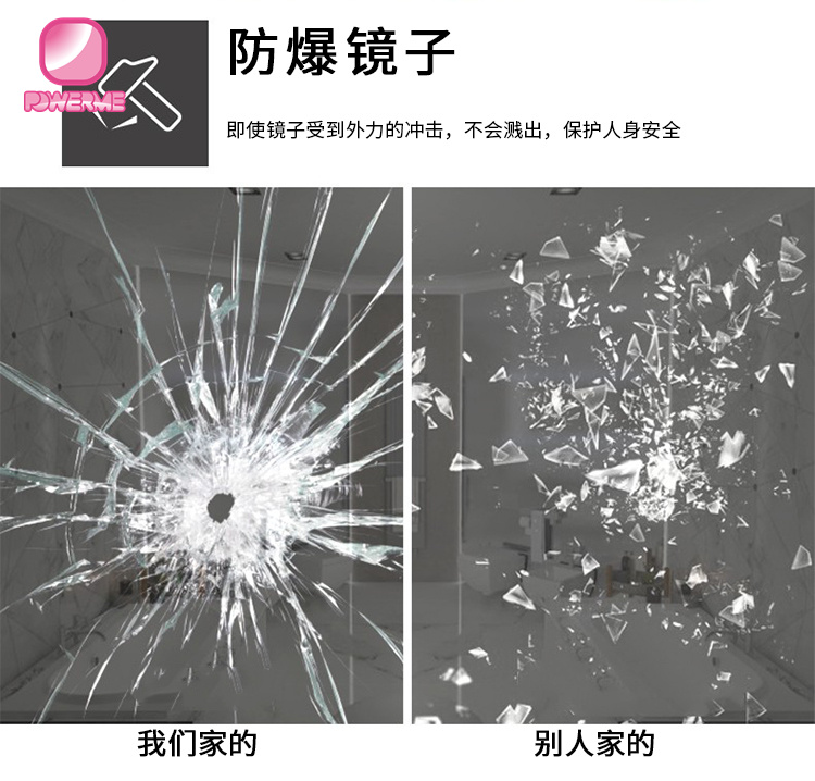 2.環保無銅鏡面,浮化玻璃,帶有拋光邊緣保護手指,4毫米厚度,適用于高濕度位置使用;