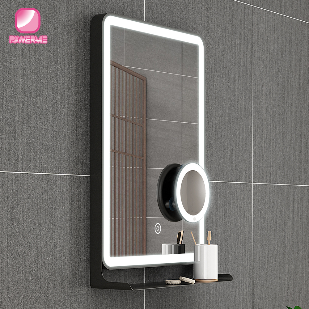 PM-E100 防霧防水壁掛led浴室鏡 帶置物臺外框鋁材 酒店LED衛(wèi)浴鏡