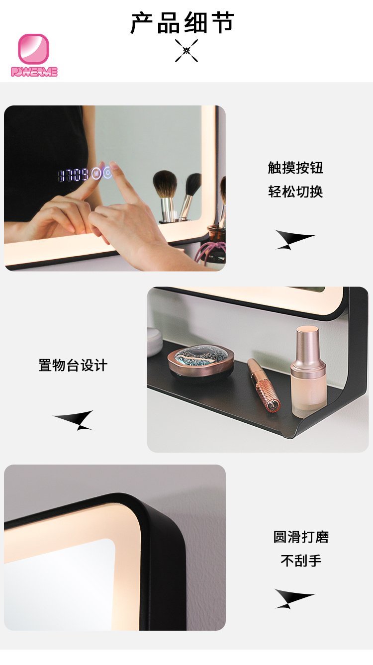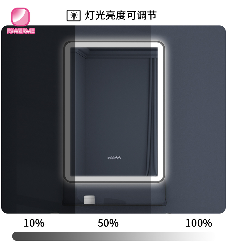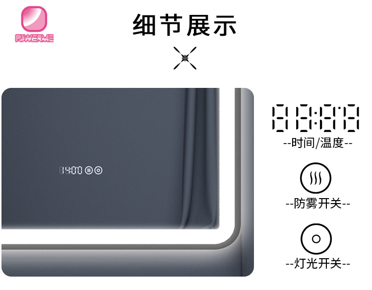 4.鏡面雙鍵觸摸帶時鐘開關(guān),無極調(diào)節(jié)燈光亮度;