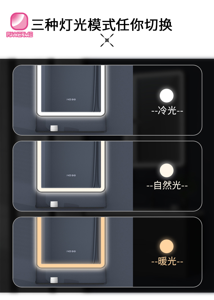 3.卓越的燈光,磨砂寬度為25mm,框體全包圍,使得出光均勻;2835LED燈條,10*30Mil的芯片,超長使用壽命約40000小時節(jié)能,采用創(chuàng)新的防霧功能;