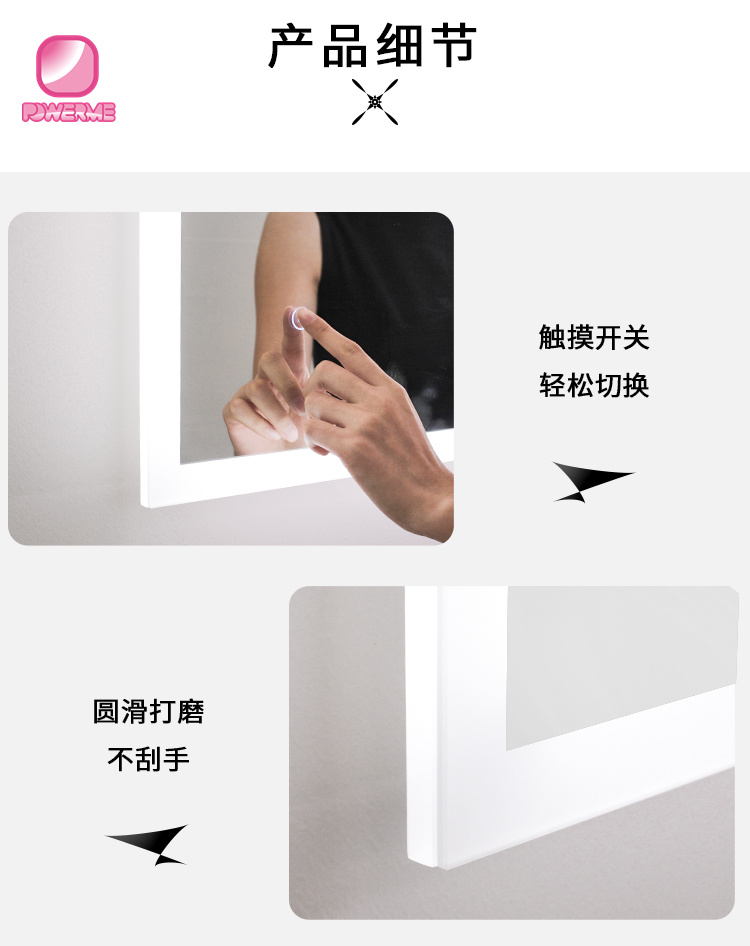 4.鏡面單鍵觸摸開關,無極調節燈光亮度